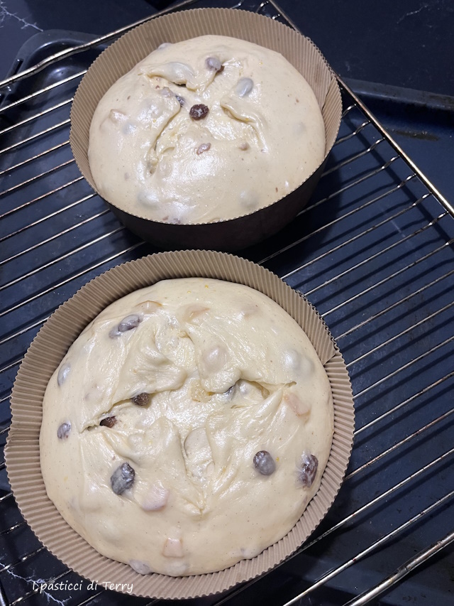 A questo punto dividere secondo gli stampi che andrete a usare, pirlare bene l’impasto e posarlo all’interno dello stampo scelto. Io ho fatto due piccoli panettoni bassi.
