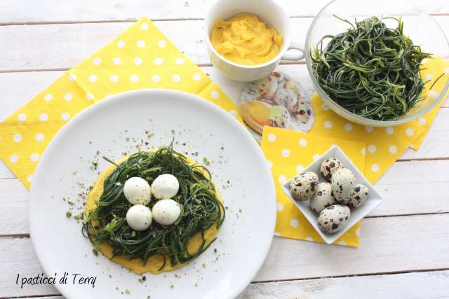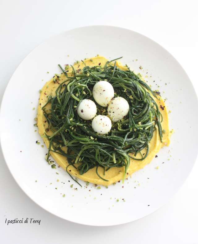 38 pensieri su “Agretti con salsa allo zafferano ovette di quaglia e pistacchi”