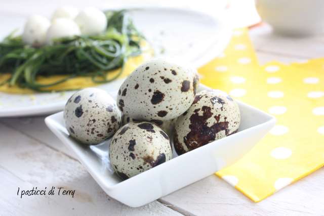 La scelta delle ovette di quaglia è dettata più da un gusto estetico che altro, anche perché non è semplicissimo sgusciarle e mantenerle integre.