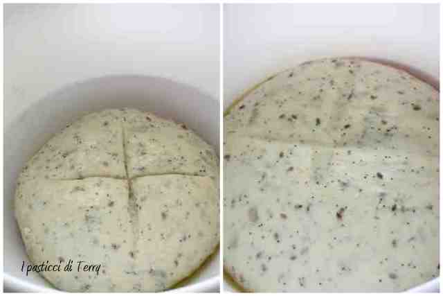 Io ho impastato con il mio fedele bimby ma potete usare anche una normale impastatrice, scaldando appena latte e acqua e sciogliendo prima dentro il lievito, come ho fatto io. Dunque mettere acqua e latte nel boccale del bimby, scaldare appena 1 minuto a 37°. Mettere dentro il lievito, lo zucchero e il bicarbonato. Girare 20 secondi vel. 2. Aggiungere la farina setacciata e impastare 3 minuti, funzione spiga. Dopo 1 minuto aggiungere dal foro l’uovo e dopo qualche secondo anche il sale, i semi e l’olio. Formare una palla con l’impasto e adagiarlo in una ciotola con coperchio.