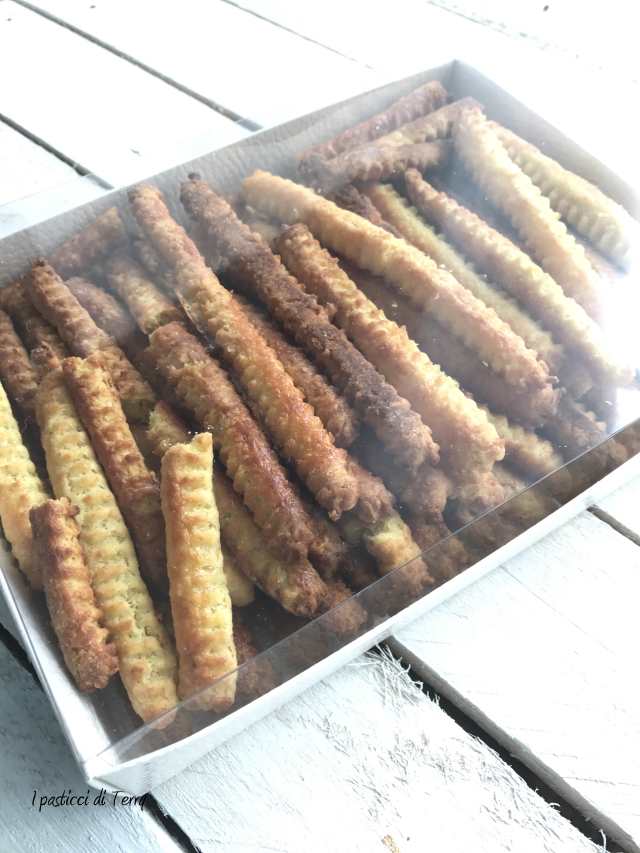 Stendere con il mattarello, aiutandosi con una leggera spolverata di farina, a un altezza di circa mezzo centimetro. Tagliare dei bastoncini, magari con la rotella, così da dare un motivo carino. Non fateli troppo sottili, altrimenti si bruciano.