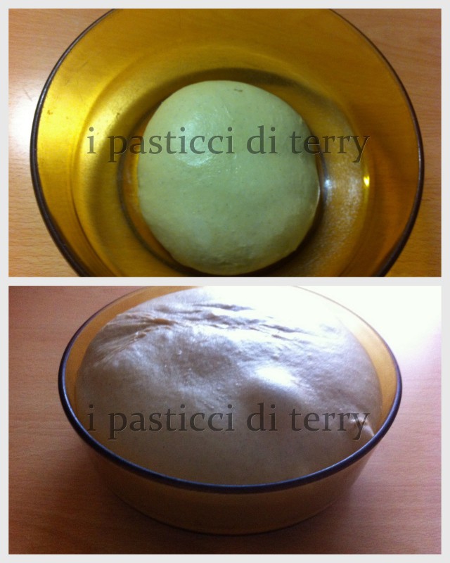 Ho chiuso a palla e messo in una ciotola, avvolto con pellicola e lasciato nel forno spento dal pomeriggio alle 18 (verso le 22 ho acceso la lucetta del forno) fino al mattino alle 8.30 (tenete presente che da me fa molto freddo)