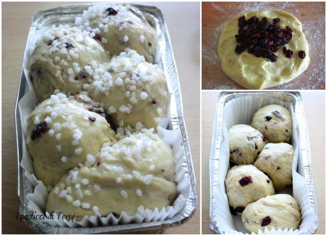 Al mattino, a impasto lievitato, scolarli bene dal liquido. Rovesciare l’impasto sul piano leggermente infarinato, allargarlo e mettere i frutti rossi al centro. Arrotolare l’impasto su se stesso e incorporare bene i frutti.