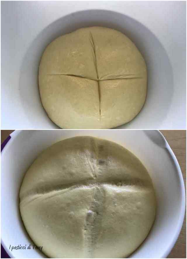 Nella ciotola della planetaria, o come me nel boccale del bimby, mettere la farina, lo zucchero, le uova e il latte, sbriciolare sopra il lievito. Mescolare per 3 minuti, funzione spiga, (o impastare). Ora aggiungere il burro e il sale, impostare altri 2 minuti, sempre funzione spiga. L’impasto dovrà risultare liscio. Mettere in una ciotola, coprire con pellicola e lasciar lievitare al raddoppio.