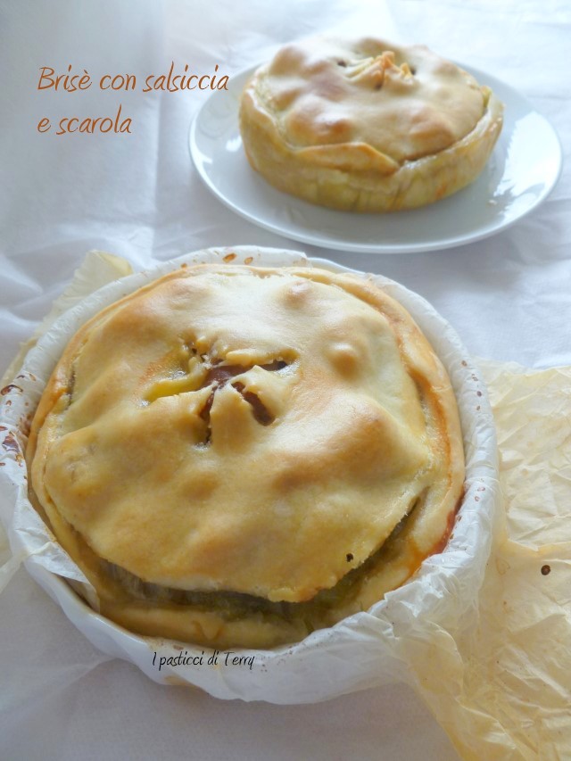 magari non interessa a nessuno ma io sono per la doppia brise sopra e sotto, perchè è più comodo da mangiare, il ripieno non esce, tra l’altro un ripieno molto gustoso con un po la scarola un po amarognolo e la salsiccia invece che ricca con anche l”aggiunta d’olive, buona molto buona