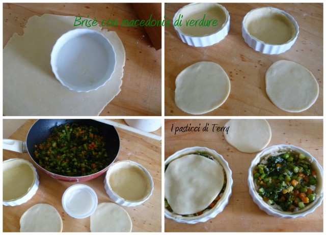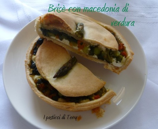 Brisè con dadolata di verdureCoprire con il coperchio di brisè.  Se vi piace mettete sopra una punta di asparago o altra verdura a decorazione.