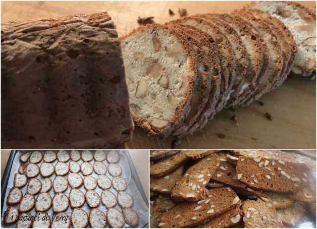 Unire infine la frutta secca. Io l’ho tritata grossolanamente a coltello, dopo averla tostata. Vedete voi come preferite. Accendere il forno a 180° e rivestire degli stampi con la carta forno, prima bagnata e poi strizzata. Io ho usato due stampini piccoli da 10×5. Per non fare delle forme molto grandi. Preferivo dei biscotti piccoli.