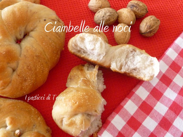 Queste Ciambelle alle noci, sono nate per caso. Vi ricordate le mie Trecce alle erbe aromatiche? Ecco, l’impasto è lo stesso, solo che al posto delle erbe aromatiche, ho farcito con delle noci  frantumate e formato delle ciambelle, intrecciando i cordoncini di pasta. Naturalmente potete fare le forme che più vi piacciono.