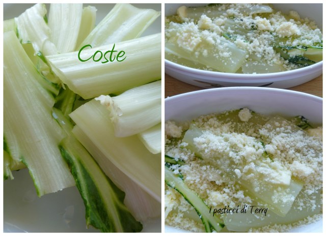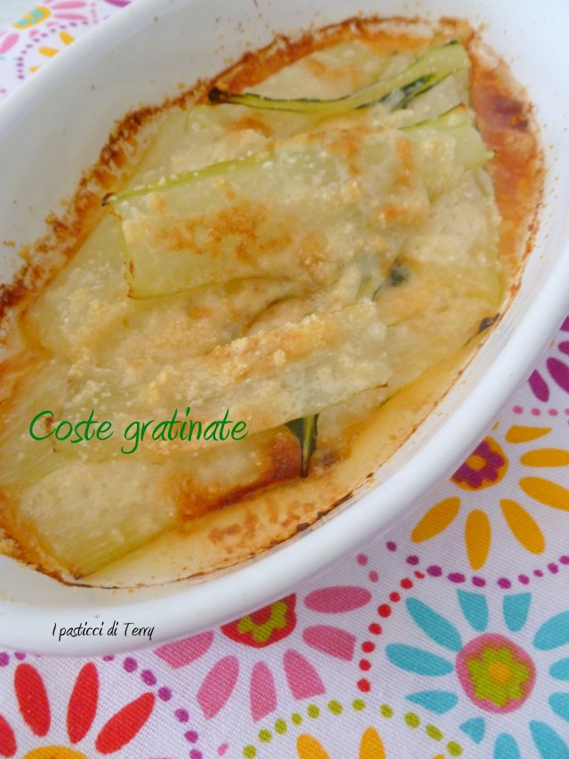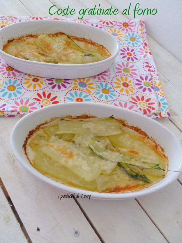 Mi piace la verdura gratinata ma purtroppo no alle coste non mi piace il sapore- L’unico modo mangiate dal mio amico napoletano ridotte a strisce verde e costa e poi saltate in padella con aglio olive e acciughe.