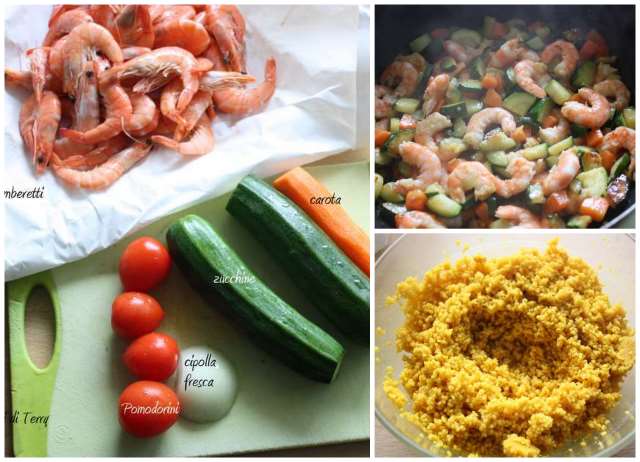 A me piace tantissimo il cous cous, in tutti i modi e con qualsiasi cosa. Mi piace caldo, freddo … si ma non a mio marito. Glielo avevo presentato in insalata, tempo fa e me lo ha schifato senza una chance. L’altro giorno invece l’ho fatto diventare giallo, grazie alla curcuma. L’ho condito con delle verdure croccanti: zucchine e carote. Gli ho aggiunto dei gamberetti e a crudo dei pezzi di pomodorino … beh, non solo l’ha mangiato con gusto ma ha pure detto: che buono!!
