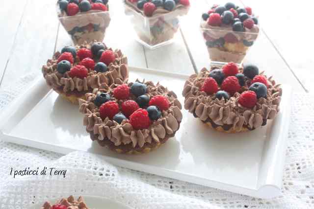 Nel frattempo montare la panna ben fredda, unire poi la nutella, poco alla volta, cercando di non smontare il tutto. Mettere in un sac a poche e decorare le Crostatine. Finire con i frutti di bosco a piacere. Conservare in frigorifero.