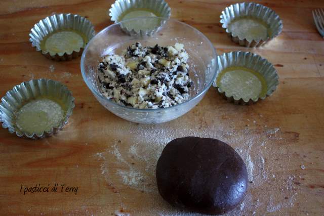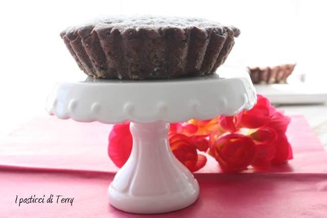 dei tortini decisamente golosi mi piace la frolla al cacao che nasconde la crema di ricotta all’interno con le pere