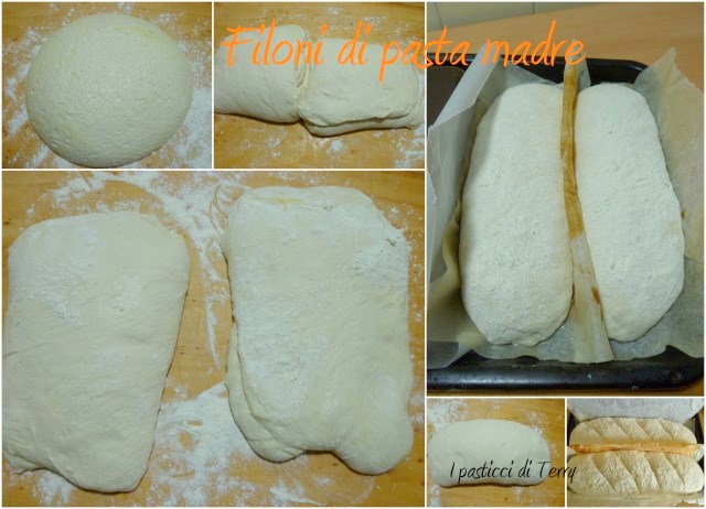 (ho formato i miei due filoni, dividendo l’impasto, facendo una piega a tre e arrotolando su se stesso ogni singolo filone. Messo a lievitare con un fermo, perché l’impasto risulta molto morbido e non volevo mi venissero due sottilette. Ho messo nel forno, prima scaldato leggermente e dopo 4 ore erano pronti da informare.)
