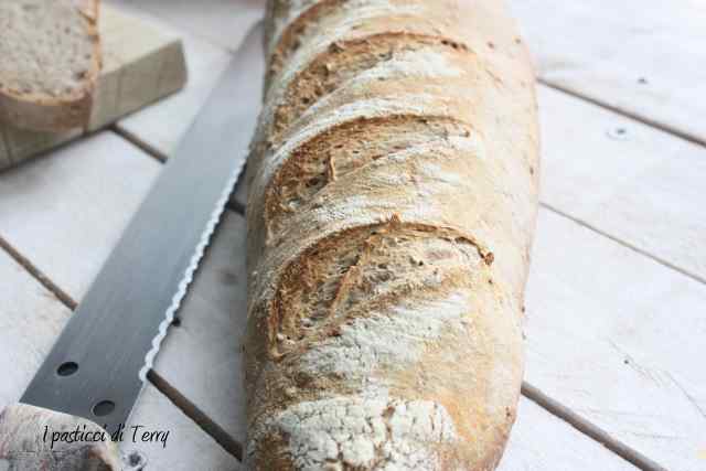 Un profumo che non vi dico, a me è piaciuto molto. Provatelo. Filoni di pane farro e orzo.