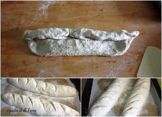 Accendere il forno alla massima potenza. Posizionare una teglia bassa con dentro dell’acqua fredda, sul fondo del forno. Fare dei tagli ai filoni e infornare, spruzzando dell’acqua sulle pareti del forno.