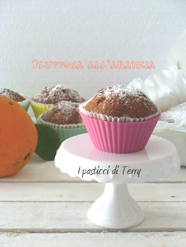 Ecco quindi la ricetta di oggi  che …. ebbene si, ci sono cascata di nuovo, l’ho rifatta. Questa volta è all’arancia, ok sempre la ricetta della Fluffosa però questa ha un aroma diverso … Del resto è così soffice e buona che non potevo non provare anche questo gusto. Ti diò che non so se è più buona quella al Caffè o questa. Diciamo che sono buone tutte e due, ok? Devi provarla, io ho fatto la dose intera e ho fatto uno stampo usa e getta da 8 e 5 forme di muffin. Ecco la mia Fluffosa all’arancia.