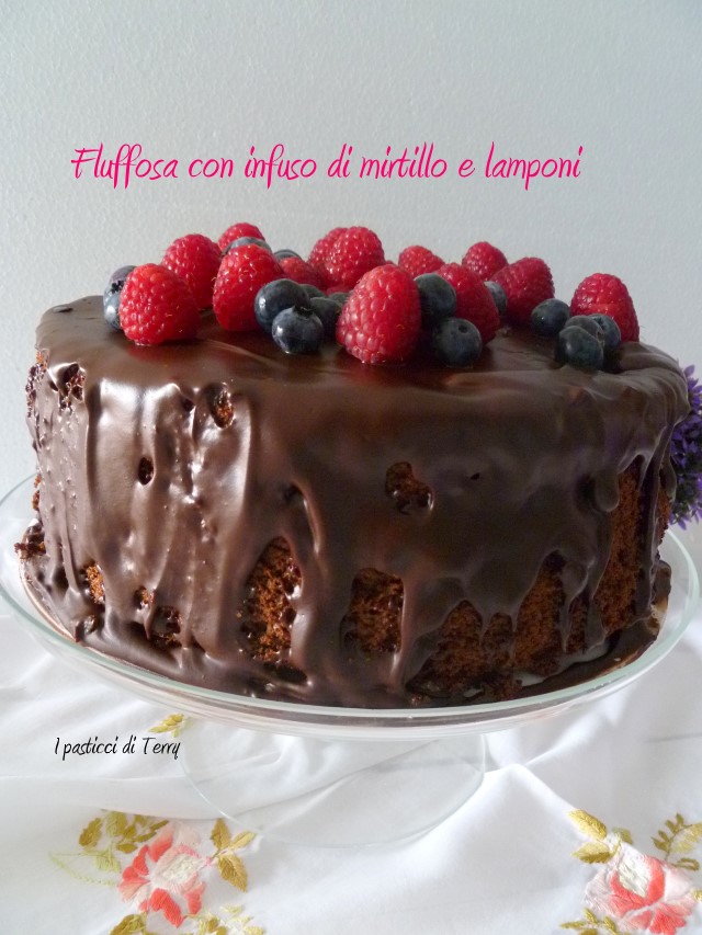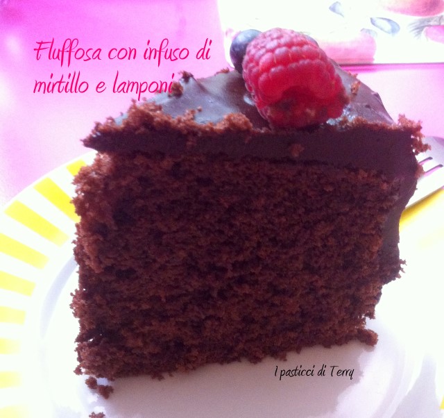 Fluffosa cioccolato e infuso mirtilli e lamponi. Oggi è il mio compleanno … Mi guardo allo specchio e dico che non è possibile che oggi compio tutti questi anni. Io mi sento giovane, mi vedo giovane! Starò diventando orba? Si, forse un pochino si ma non mi vedo così vecchia. Eppure il calendario mi dice che oggi compio la bellezza di 58 anni. Io non sono tra quelle persone che non dichiara la sua età. Io me ne frego e la dico. Sono più vicina ai 60 che ai 50 … com’è possibile? A pensarci mi deprimo e allora sai che ti dico? Non ci penso! Visto che voi siete tanto carini con me, mi sembra giusto offrirvi una fetta di torta. Certo, è solo virtuale ma come faccio a offrirvela per davvero? Dovrete accontentarvi. La festa la farò domani sera, con la mia famiglia. Non ho ancora deciso che tipo di torta farò ma certamente ve la farò vedere prossimamente.
