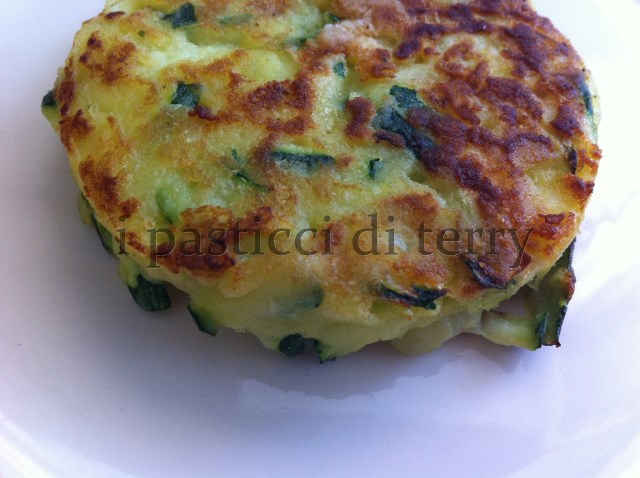 Oggi invece voglio lasciarvi una ricetta salata; delle frittelle di zucchina. La ricetta non è mia, ho fatto solo una piccola modifica. La ricetta originale la trovate Fritte, ringrazio Chiara per lo spunto. Le ho trovate molto buone, scrocchiarelle fuori e morbide e dolci dentro. A noi sono piaciute molto. Il giorno dopo, ne avevo avanzate due e le scaldate al micro onde, sono rimaste buone allo stesso modo ma non erano più scrocchiarelle fuori. Altra cosa io non le ho fatte fritte ma ho unto appena appena una padella antiaderente, spennellando due gocce di olio extra vergine di oliva.