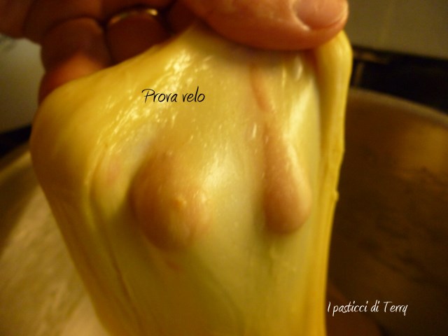 Vi raccomando sempre un cucchiaino alla volta alternato a poca farina e sempre aspettando che riprenda l’incordatura. Questo passaggio è molto importante, se perdete l’incordatura siete fritti. ci vuole pazienza e non abbiate fretta. L’impasto è vivo e vanno rispettati i suoi tempi, solo così vi ripagherà di un buon lievitato, soffice e leggero. Quindi non fatevi tentare di aggiungere tutto in fretta, ok?
