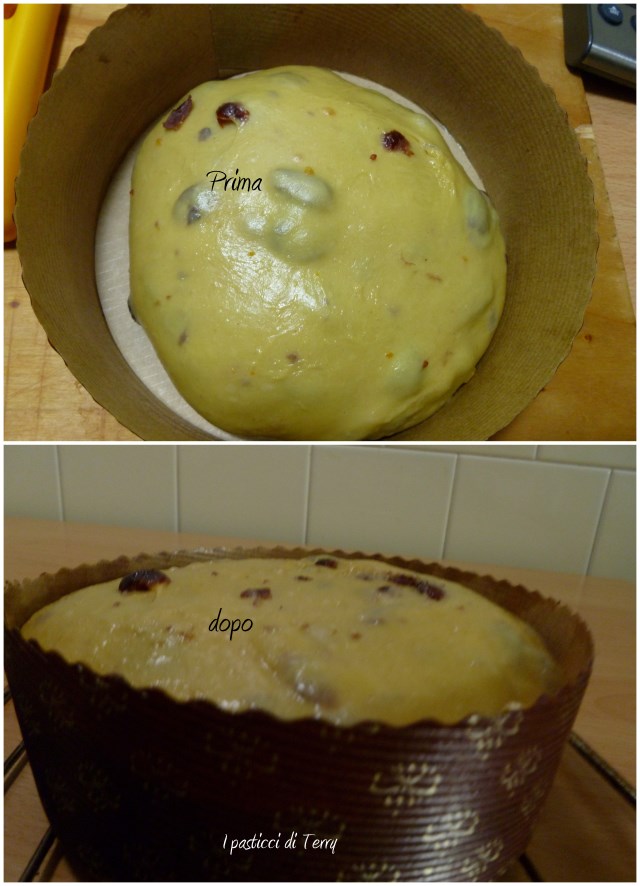 Io ho messo l’impasto, ben “pirlato” in due stampi da 500g e lasciato a circa 30gradi fino a che ha raggiunto il bordo dello stampo stesso.