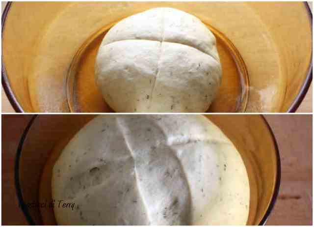 Ottenuta una palla liscia e soda, mettere in una ciotola, coprire e lasciar lievitare fino al raddoppio. Io l’ho lasciata 3 ore ma dipende dalle giornate e dalle vostre temperature.