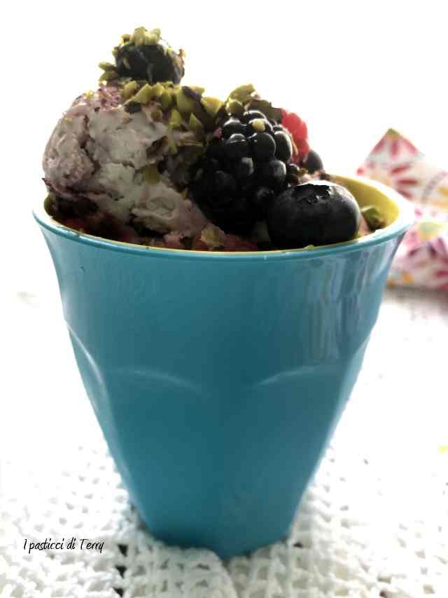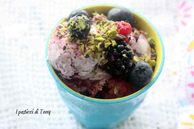 Vedete voi come prepararlo. Gelato al mascarpone senza gelatiera con frutti di bosco e pistacchi.