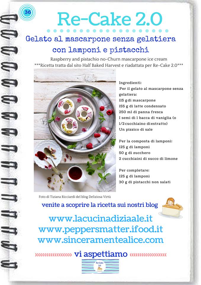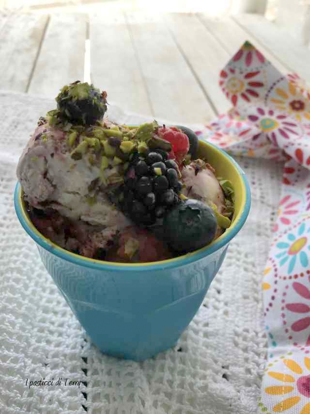 Gelato al mascarpone senza gelatiera con frutti di bosco e pistacchi. Questo mese partecipo anche io al Re.cake2.0