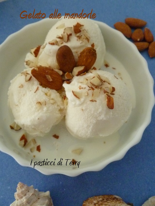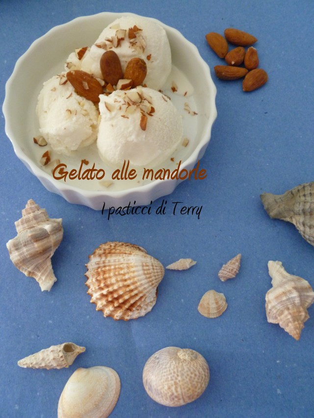 Questo è un gelato delicato, che quando lo hai mangiato ti lascia in bocca quel buon sapore di mandorla, se poi sei fortunato come me, che hai un panetto di pasta di mandorle, arrivato direttamente dalla Sicilia … che te lo dico a fare?! L’altro giorno la mia amica Maria, da Scicli mi ha mandato un pacco pieno di cosine buone e di bavaglini ricamati da lei e …tante tante cose, per noi e per Christian in particolare. Grazie ancora Maria. ♥ Tra queste cosine buone c’era anche la pasta di mandorle e quella di pistacchi, con cui ci farò un altro gelato. Ad ogni modo questa pasta di mandorle era ancora della scorta che avevo in casa, dono della mia gemella Patty, sempre dalla Sicilia.