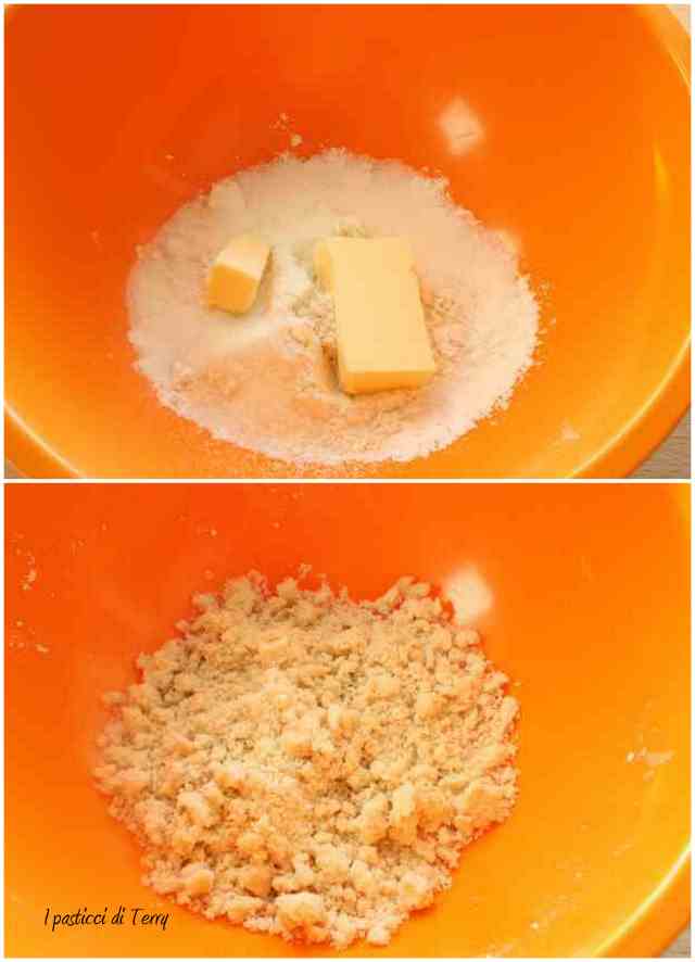 quindi aggiungere sopra il crumble. Infornare per circa 20 minuti o fino a quando in superfice risulterà il crumble leggermente dorato. Sfornare e servire.