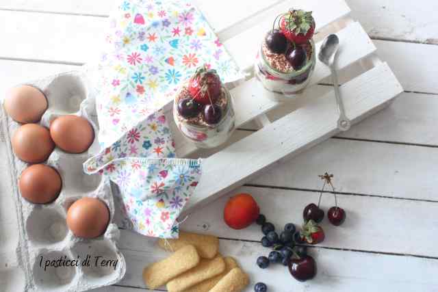 Quest’anno ho provato anche a farlo con la frutta e bagnando i biscotti nel latte, così hanno potuto mangiarlo anche i bambini. In questo caso, sopra la crema e prima del secondo strato di biscotti, ho aggiunto della frutta, lavata e fatta a pezzi. Poi decorato sopra con la frutta presente all’interno del bicchiere.