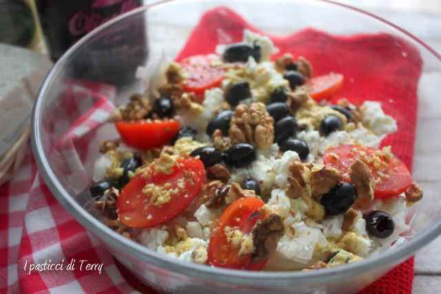 Vi assicuro che i gusti si sposano benissimo tra di loro. La sapidità della feta incontra il dolce delle perle e il croccante delle noci. Una bontà.