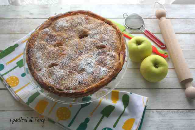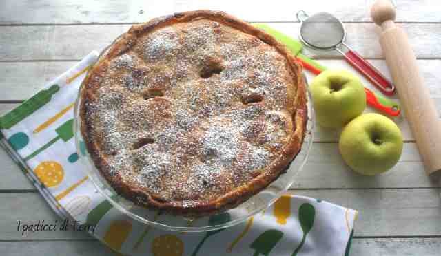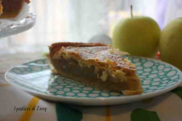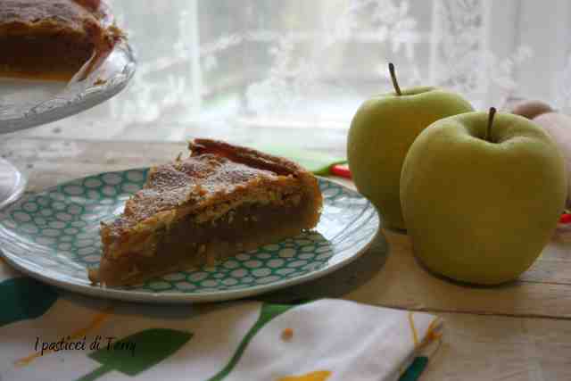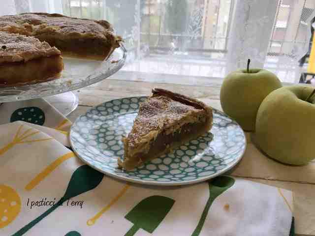 Fate attenzione perchè come la taglierete, una fetta dopo l’altra, finirà in un attimo! La crosta sembra una sfoglia, croccante e friabile. Il ripieno con le mele Granny Smith, leggermente asprigne, ci stanno benissimo. Credevo fosse poco dolce, visto il quantitativo di zucchero presente. Invece l’ho trovata perfetta, asprigna è vero ma tanto tanto buona.