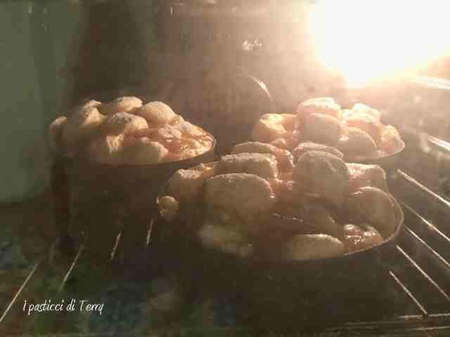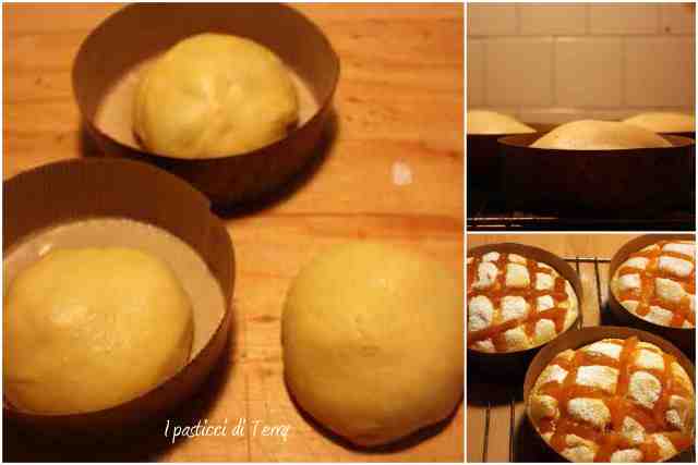 Lasciare all’aria l’impasto per permettere di fare la pelle. Tagliare a griglia, con un bisturi. Nei tagli siringare un pochino di marmellata, messa in un sac a poche. Spolverare di zucchero a velo e infornare a 160° per circa 30 o 40 minuti, secondo la grandezza degli stampi.