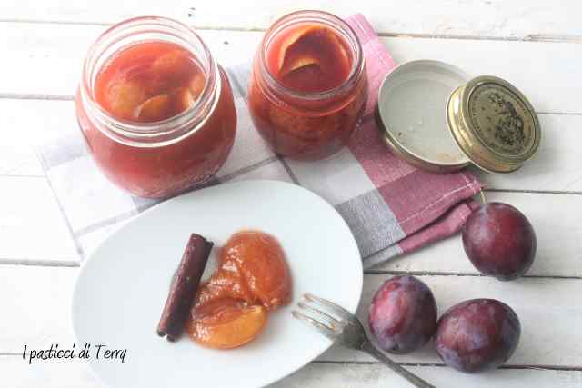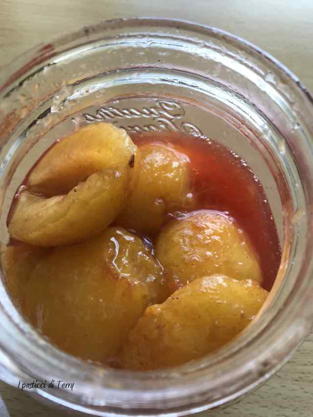 Questo libro è scritto in inglese e dice di far sobbollire le prugne nello sciroppo preparato per 4/5 minuti. Io ho rifatto la ricetta due volte perché facendo come dice la ricetta, le prugne mi si sono tutte spappolate. Quindi le ho rifatte, facendo prendere il bollore allo sciroppo, spegnendo il fuoco e tuffando dentro le prugne. Ho contato giusto un minuto, a fuoco spento e spellato le prugne. Così restano intere, non si spappolano e la buccia viene via lo stesso.