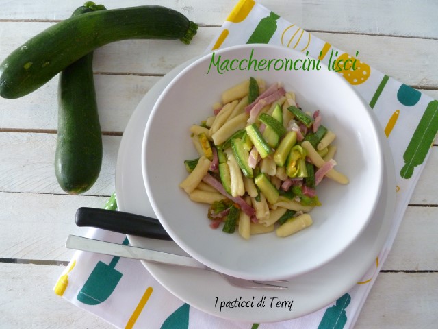 Questo è il formato di pasta preferito da mio marito, lo so, ormai l’ho viziato. Però io adoro fare la Pasta fresca in casa, per me davvero un salva nervi! E così l’altro giorno mi trovavo delle piccole zucchine tenere, con il fiore, prese poco prima dal mio balcone e del buonissimo speck trentino, decido di fare un sughetto di quelli sciuè-sciuè, che si fanno giusto in dieci minuti, intanto che l’acqua della pasta bolle. Il formato decido di farlo scegliere a lui, che formato vuoi? Maccheroncini, mi piacciono tanto i tuoi Maccheroncini. E allora vuoi che non glieli preparo? Ecco qua i miei Maccheroncini al ferretto con zucchine e speck.