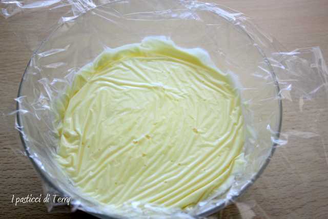Quando tutto sarà ben amalgamato, versate di nuovo nel pentolino e riportare sul fuoco dolce, fino a raggiungere la giusta densità, tenendo sempre girato con un cucchiaio. Togliere dal fuoco, versare in una ciotola fredda, mettere la pellicola a contatto e far raffreddare.