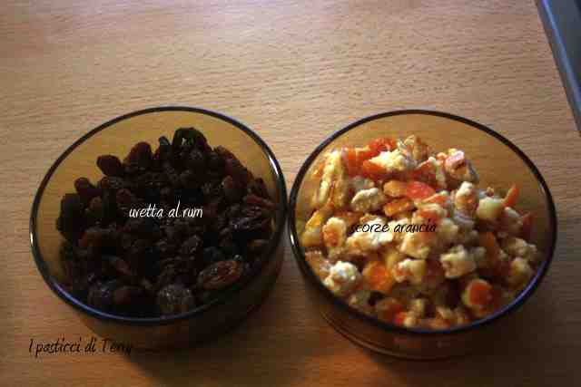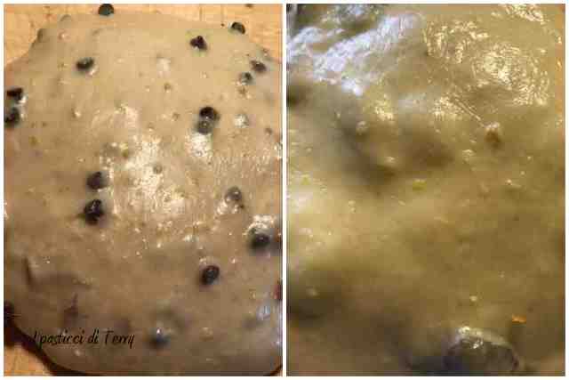 *io ne ho fatto uno con 100 g di amarene sciroppate, sgocciolate per bene + 100 g di gocce di cioccolato congelate. L’altro con 100 g di uvetta lavata e poi ammollata con del rum + 100 g di scorzette di arancia candita. Qui potete sbizzarrirvi con quello che più vi piace: pere candite e noci, frutta disidratata e gocce di cioccolato, fichi secchi e noci, albicocche disidratate o altra frutta… quello che vi pare insomma. Il procedimento è sempre lo stesso.