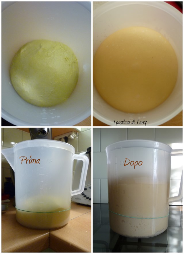 Mettere nello stampo e fare lievitare, sempre a 28/30 gradi fino a quando l’apice raggiunge il bordo. Qui dipende, sapete benissimo che non posso darvi un tempo; diciamo che a me ci vogliono dalle 6 alle 9/10 ore, dipende dalla temperatura.