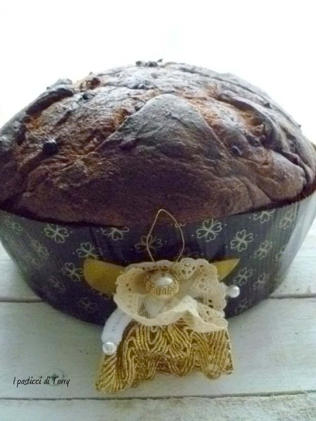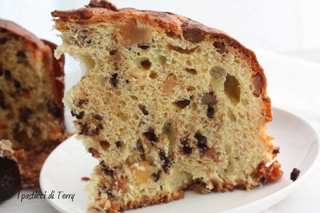 Questo Panettone l’ho fatto due volte. Speravo di ottenere delle pere candite che si sentisserono nel panettone e facessero la loro figura. Invece facendole candire in casa e aggiungendole all’impasto, si perdevano e si sentiva solo un lontano sapore. Allora che fare? Ho utilizzato delle pere candite di una nota marca. Solo pere candite, senza altre aggiunte. Devo dire che pere e noci ci stanno benissimo insieme e le gocce di cioccolato non fanno altro che aggiungere il tocco finale, completando la golosità di questo Panettone. Panettone con pere noci e cioccolato.