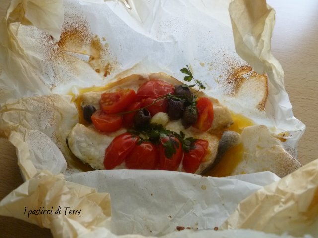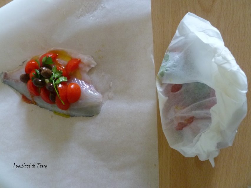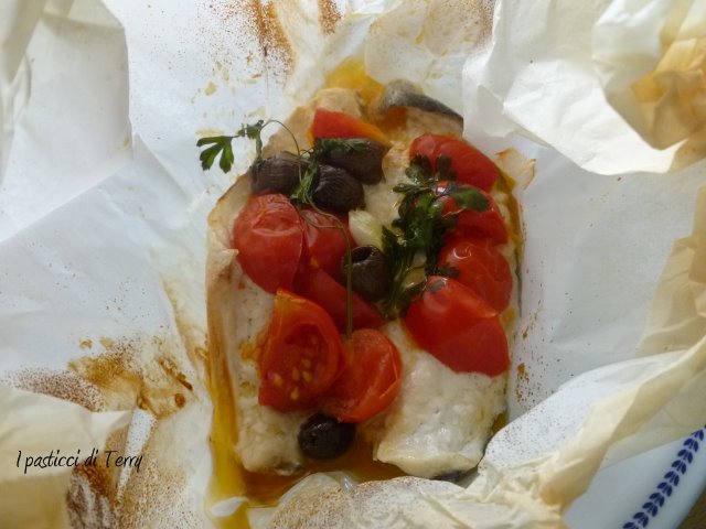 Ma veniamo alla tua meravigliosa ricetta: si tratta di uno dei modi che preferisco per preparare il pesce!! Cucinato al cartoccio si mantiene umido e gustosissimo grazie anche agli ingredienti utilizzati che si sposano perfettamente con la materia prima utilizzata e conferiscono sfiziosità alla ricetta, rendendola appetitosa e buonissima (ti confesso che mi è venuta fame solo a guardare la foto:))).