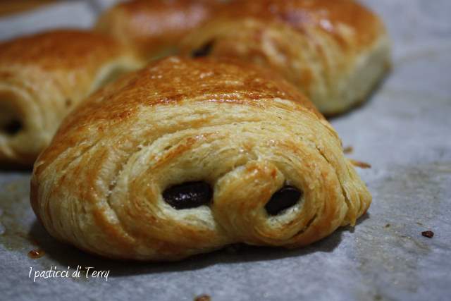 6. Che spettacolo!!! la sfogliatura è una cosa che mi mette un tantino in difficoltà ma questi sono così invitanti che potrei anche provarci. Molto golosi con 2 barrette di cioccolato invece di una. Aspetto anche i pains aux raisins che sono in assoluto i miei lievitati sfogliati preferiti. Quando vado in francia me ne faccio sempre fuori delle quantità enormi