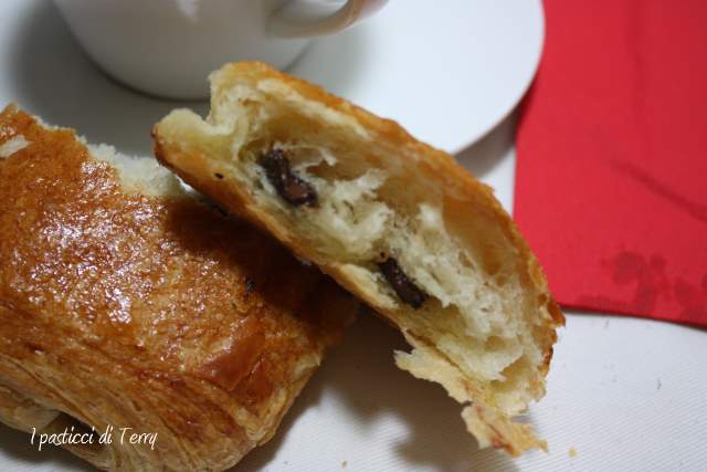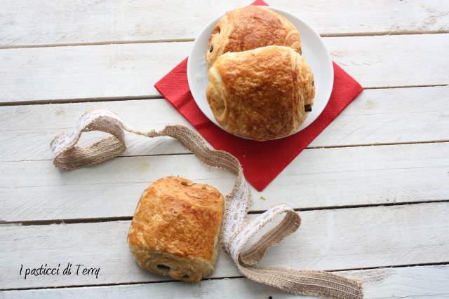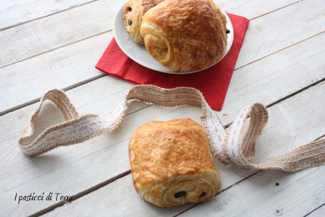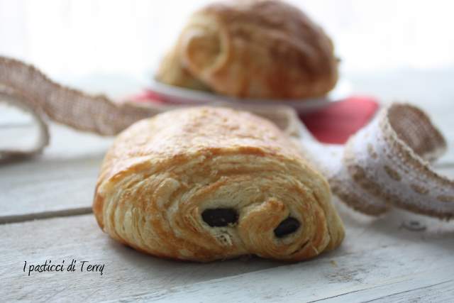 Che spettacolo!!! la sfogliatura è una cosa che mi mette un tantino in difficoltà ma questi sono così invitanti che potrei anche provarci. Molto golosi con 2 barrette di cioccolato invece di una. Aspetto anche i pains aux raisins che sono in assoluto i miei lievitati sfogliati preferiti. Quando vado in francia me ne faccio sempre fuori delle quantità enormi