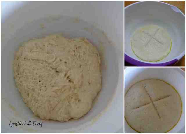 Dopo aver lasciato maturare il lievitino a temperatura ambiente scioglierlo nell’acqua con una forchetta, sbattendo vigorosamente. Si formerà una schiuma. Mischiare le farine con il malto e aggiungere piano piano al liquido. Quando comincerà a formarsi un impasto ruvido, aggiungere anche il sale e continuare a girare con una spatola. Coprire e lasciar riposare per dieci minuti circa. Quindi prendere dai bordi l’impasto e portare al centro, tutto intorno al panetto. Coprire e ripetere per altre tre o quattro volte, lasciando sempre riposare tra un giro e l’altro. Ungere quindi la ciotola di olio e posare il panetto, che avrà preso una certa forma con i giri effettuati. Coprire e lasciar lievitare a temperatura ambiente per due o tre ore. Controllare che sia partita la lievitazione e mettere in frigo per almeno dodici ore.