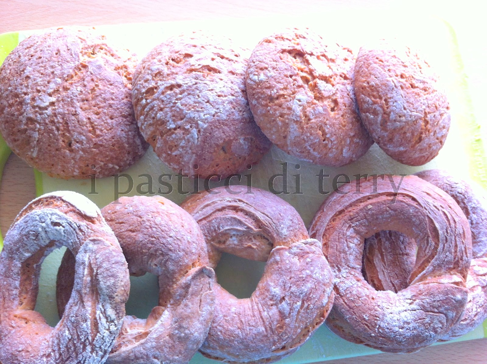 Poi ho messo a lievitare per circa 4 ore. Ho formato i panini (stavolta ho fatto anche delle ciambelline) e coperte con un canovaccio le ho lasciate lievitare ancora un paio di ore.