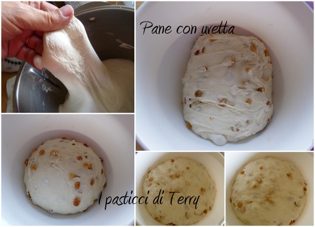 Pane con uvetta2Infornare, abbassando il forno a 220° per circa 15 minuti, poi abbassare uleriormente a 180 e portare a cottura.