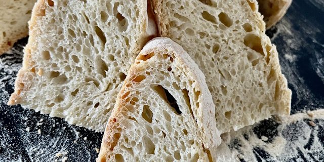 Pane di semola semplice. L’altro giorno avevo una voglia di impastare che ho preso farina, lievito e acqua e ciao, mi sono rilassata un po’. Ho preparato prima un lievitino che, secondo me, serve per avere un lievitato più soffice e nel frattempo messo semola e farina in autolisi. Secondo me, con la semola aiuta a incorporare più acqua e quindi avere un lievitato più leggero.