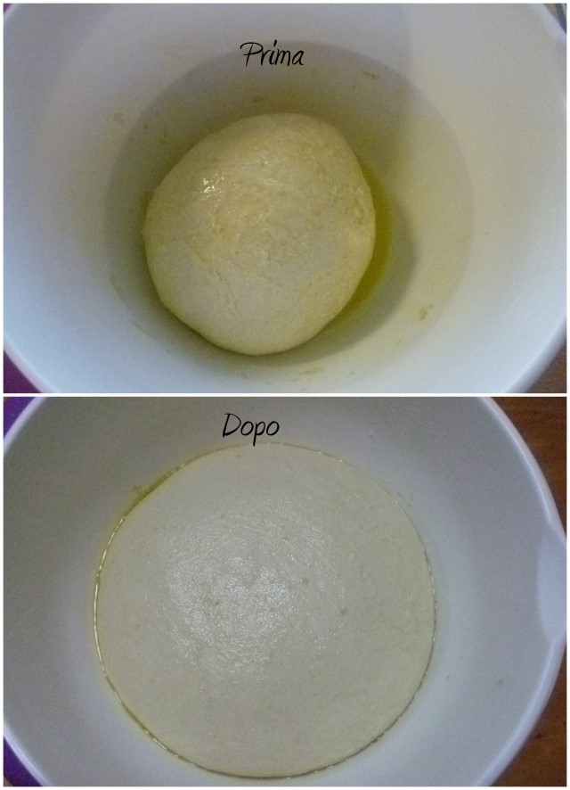 Oliare una ciotola con coperchio e mettere il panetto, facendolo girare da tutti i lati, in modo che l’olio avvolga il panetto. Coprire e far lievitare al raddoppio. Ci vorranno dalle 6 alle 8 ore.