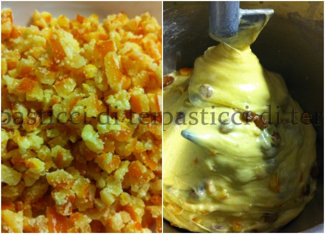 Far partire di nuovo il ken al minimo e aggiungere le scorze di arancia e le uvette ben scolate e infarinate leggermente.