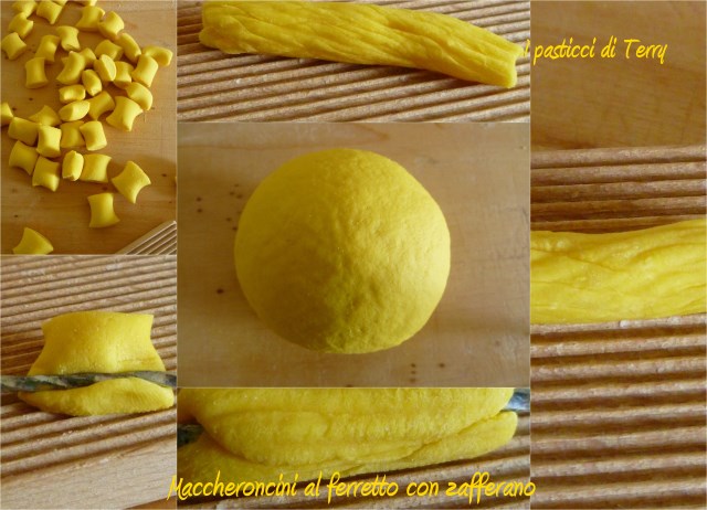 Sciogliere lo zafferano in due dita di acqua tiepida. Impastare la semola con questa acqua e aggiungere altra acqua, fino a raggiungere un impasto sodo e non appiccicoso. Per darvi un idea ci vorrà metà peso della semola, circa.