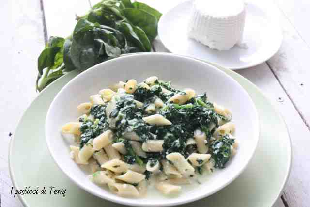 Vi raccomando sempre: comprate prodotti a km 0. Individuate nella vostra zona, fornitori di fiducia, ormai non ci sono grosse difficoltà a reperire prodotti freschi … Di sicuro il sapore dei vostri piatti ne guadagnerà in sapore e anche la vostra salute ne beneficerà, garantisco! Di solito io la pasta la faccio in casa, difficile che usi quella industriale. Stavolta l’ho usata perché avevo delle mezze penne, senza glutine, gentile omaggio di Pam&Panorama ed ecco spiegato il motivo di questo formato insolito, nella mia cucina. Vi dico come l’ho fatta io: Pasta con spinaci e ricotta
